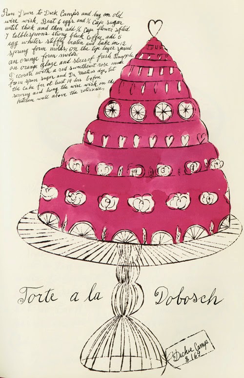 Above: A drawing from 1959 by Andy Warhol, from a limited edition humorous cookbook he and Suzie Frankfurt created, called "Wild Raspberries", with hand lettered recipes by Warhol's mother. This one is much like a nautilus shell.